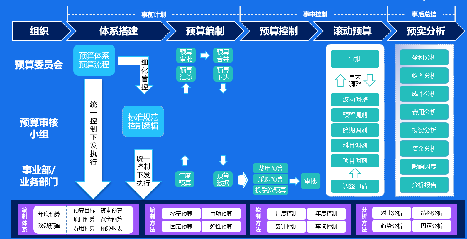 事前规划、事中控制、事后分析预算闭环