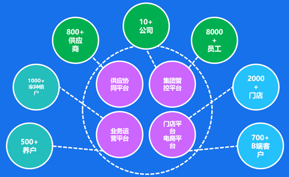 对标行业龙头企业的数字化转型策略,湘佳牧业在每个业态节点实现业务在线运营基础上,开始着手实现生态连接的数字化,把与供应商、养户、种植户、门店的沟通和数据交互,全部搬到了线上。