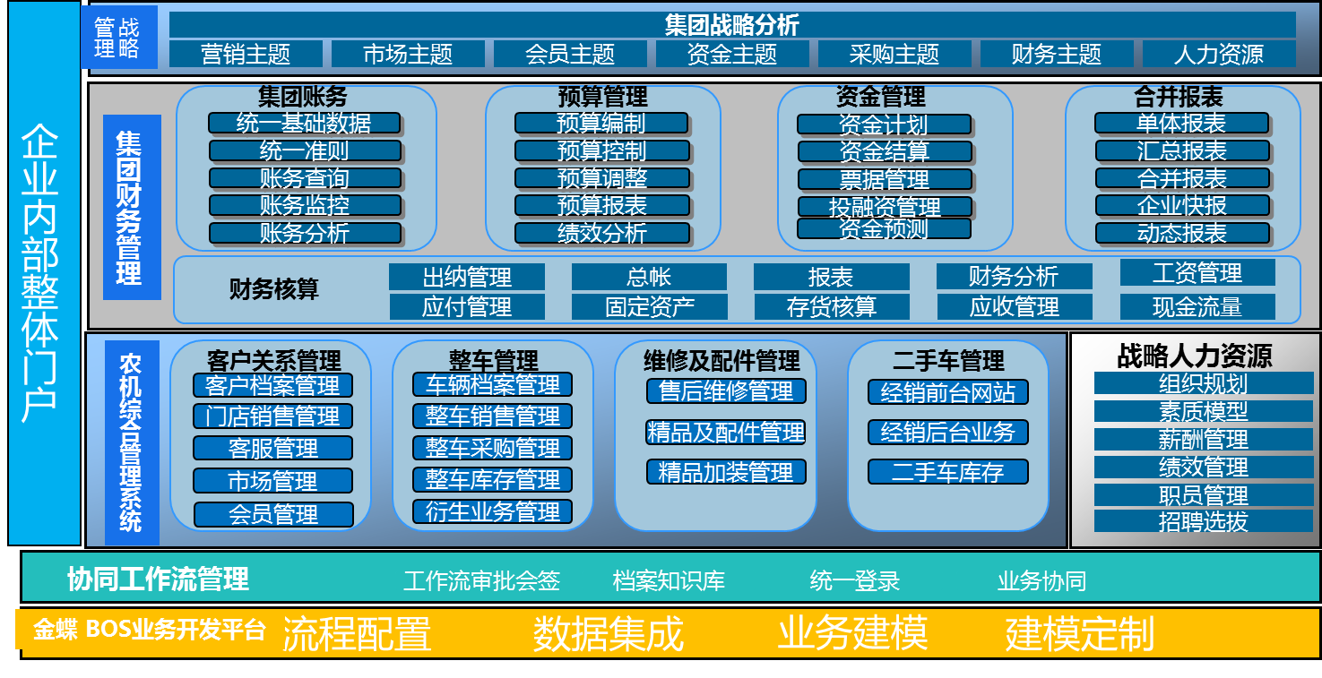 一个以智慧农业为特征的农业现代化时代正在走来,天农农机顺应智慧农业发展趋势,引入金蝶EAS 、车悦商、云之家等系统,实施数字化转型战略,搭建数据平台,构建数字化系统,推进企业数字化、智能化。