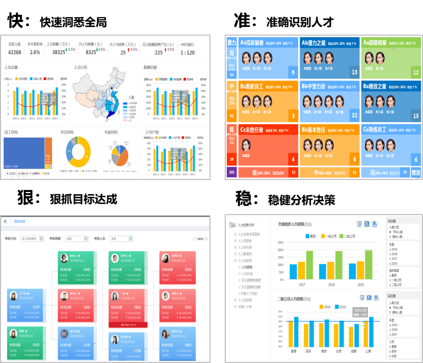 根据公司战略和业务发展,通过人力资源信息化的实施,搭建人力资源数据分析模型,为业务发展提供组织与人员配置的支持,实现人力资源数据与经营、业务的链接与分析,为公司业务的整合或拓展提供决策依据。