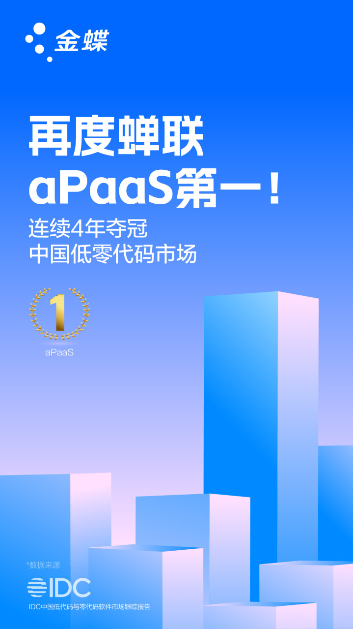 近日,国际数据公司IDC发布《中国低代码与零代码软件市场跟踪报告》,数据显示,金蝶凭借金蝶云·苍穹卓越的产品能力及市场表现,在中国低零代码市场占有率排名第一!这也是金蝶自2020登顶此领域后,连续第四年摘得此桂冠。